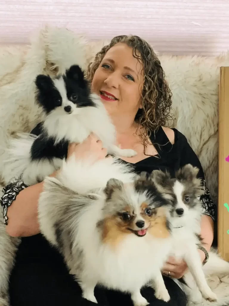My love for Pomeranians started in 1998 with a little black and white parti girl. She stole my heart but didn’t live past one year. I knew I had to have poms in my life after that.